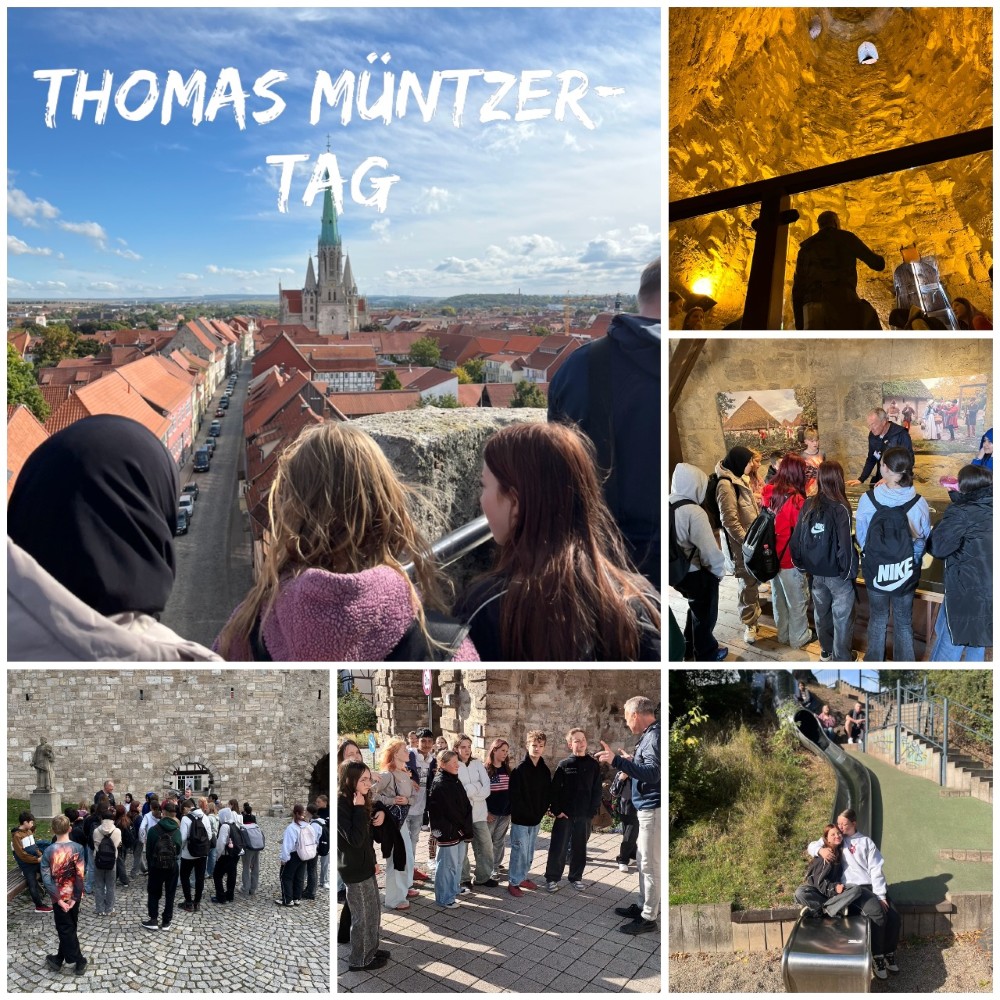 Am Thomas-Müntzer-Tag unternahmen die beiden 6. Klassen unserer Schule eine Rundführung über die Mühlhäuser Stadtmauer. Unter Leitung von René Jahn erfuhren die Schülerinnen und Schüler spannende Details und welche Rolle diese früher spielte. Sehr eindrucksvoll war auch der Besuch am Thomas-Müntzer-Denkmal, wo die Taten unseres Namensgebers im Mittelpunkt standen – das weckte großes Interesse.
